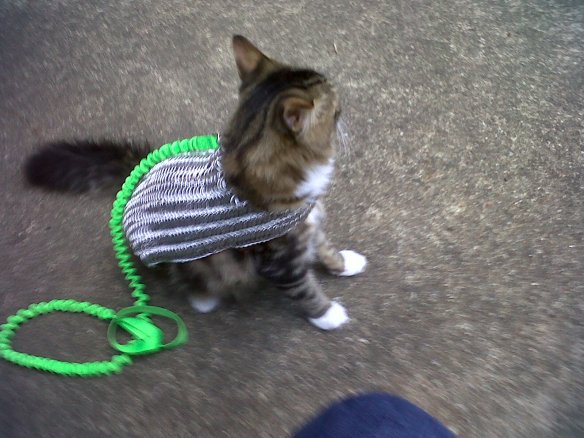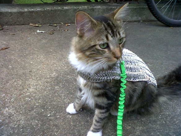 On second thought, Sir Kitten is going nowhere fast in his armor. Perhaps the leash is less than necessary.