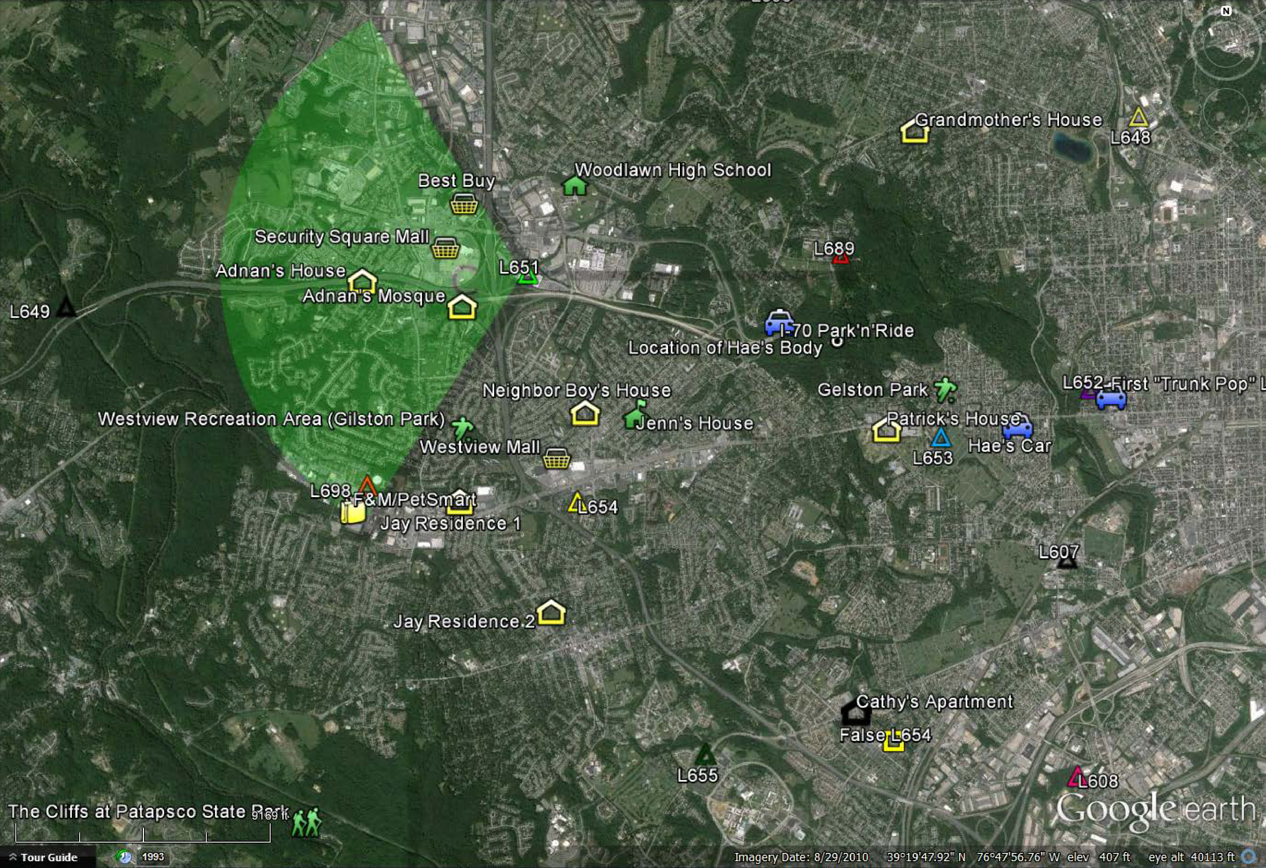 63. My story…I listened to the podcast New Year’s Eve since than I have listened to it five times and I need more information to get a better understanding of some people. I feel like I can create Adnans day for him pretty easily if I knew more. Maybe it would help him remember some things. I am pretty positive he didn’t do this in anyway he was convicted. Why do I think this? Probably many of the reasons you think he didn’t. One reason that stands out to me tho is track ends around 5pmcorrect? So the 4:58 incoming call checks out 19 seconds “hey we’re about done come get me” sounds right. Then the 5:14 #adnan call that’s him calling his voicemail. Takes Jay 15 to get there then he calls his voicemail. The voicemail is more then likely Nissan calling him back or maybe Hae saying I’m about to leave meet me here?. If you leave your phone at home or your desk and you come back to it and you have a voicemail, you call it right? I do. It Could be important. So if he was with Jay why would he wait to listen to it? He wouldn’t, we wouldn’t. I think Hae died around 315 and I think Jay did it or met up with whoever did it between 321 and 332 I think the nisha call is Hae being transferred into her trunk because you’re lifting a body into a car that to me is a very possible reason that call was made and button was held down. “Bestbuy” maybe. Now it’s the what the hell are we going to do? The plan I think was to take her car to the park and ride until later. That’s why the “L651c” was pegged twice on the drive to the highway 70 To go east to the park and ride I think he was calling these two guys for a ride back. From the park and ride. “I know I’m reaching on that one but it seems correct if this third party was freaking out because they just killed someone. I wouldn’t want them coming to the site with me.” I know the park and ride drop off is probably true because Jay calls jenn at 4:12 and it’s from the L689A cell site I’m pretty sure that has to be from the park and ride.