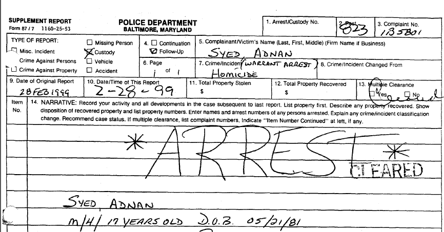 Also, I’ve lost track of Jenn’s and Jay’s many changing statements… did they say in their statements that Jay had planned to meet Stephanie on Jan 13 at any point? Stephanie said she didn’t hear from Jay until 11:30 pm. I’ve wondered about that because the whole point of Jay having Adnan’s car was to get Stephanie a birthday present, but it seemed like he had no plans to see her on her birthday so he wouldn’t have needed to get a present immediately. That always seemed so strange to me.